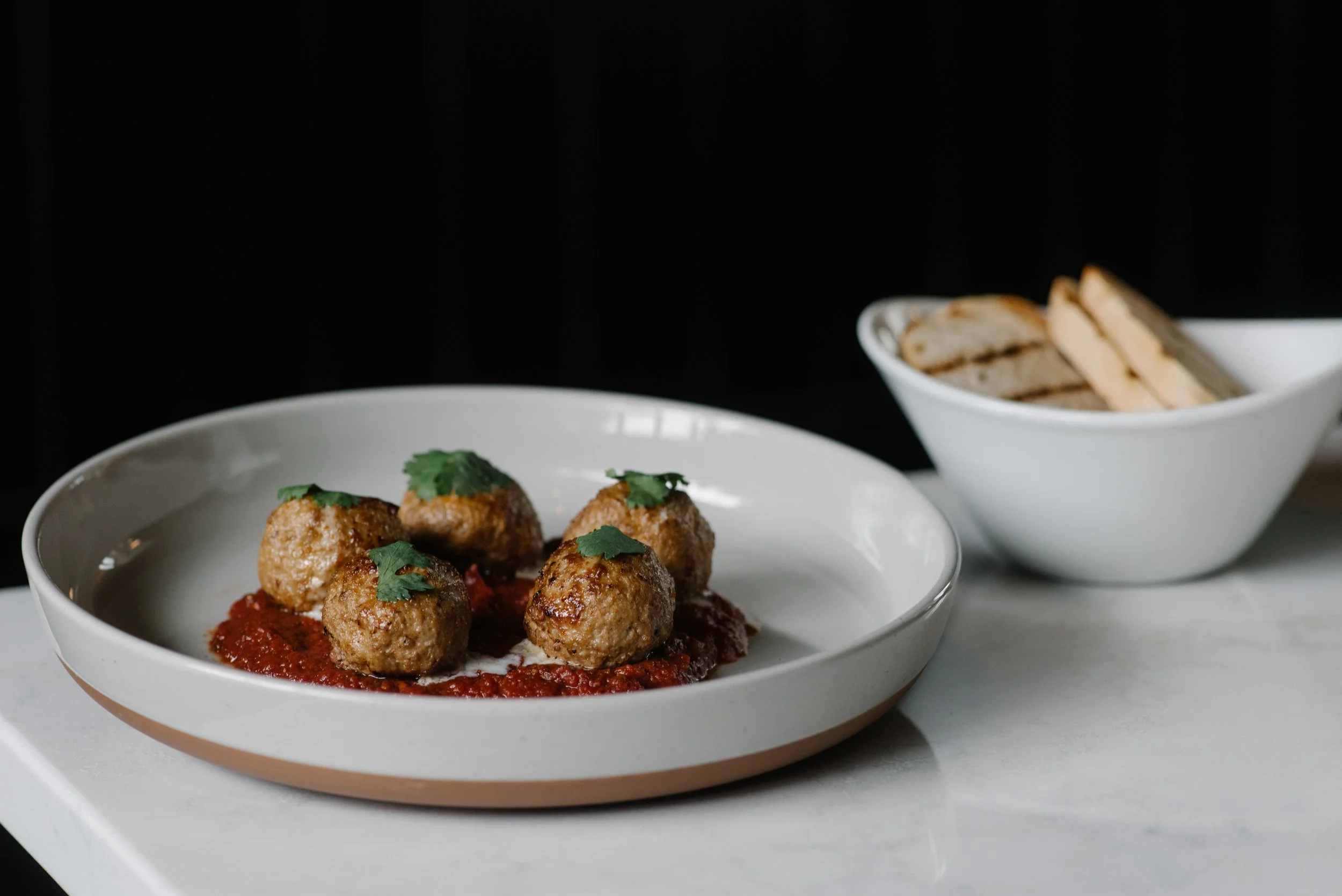 Lamb Meatballs: Tender, spiced, and topped with lemon crema and herbs, these are comfort and sophistication in one bite.