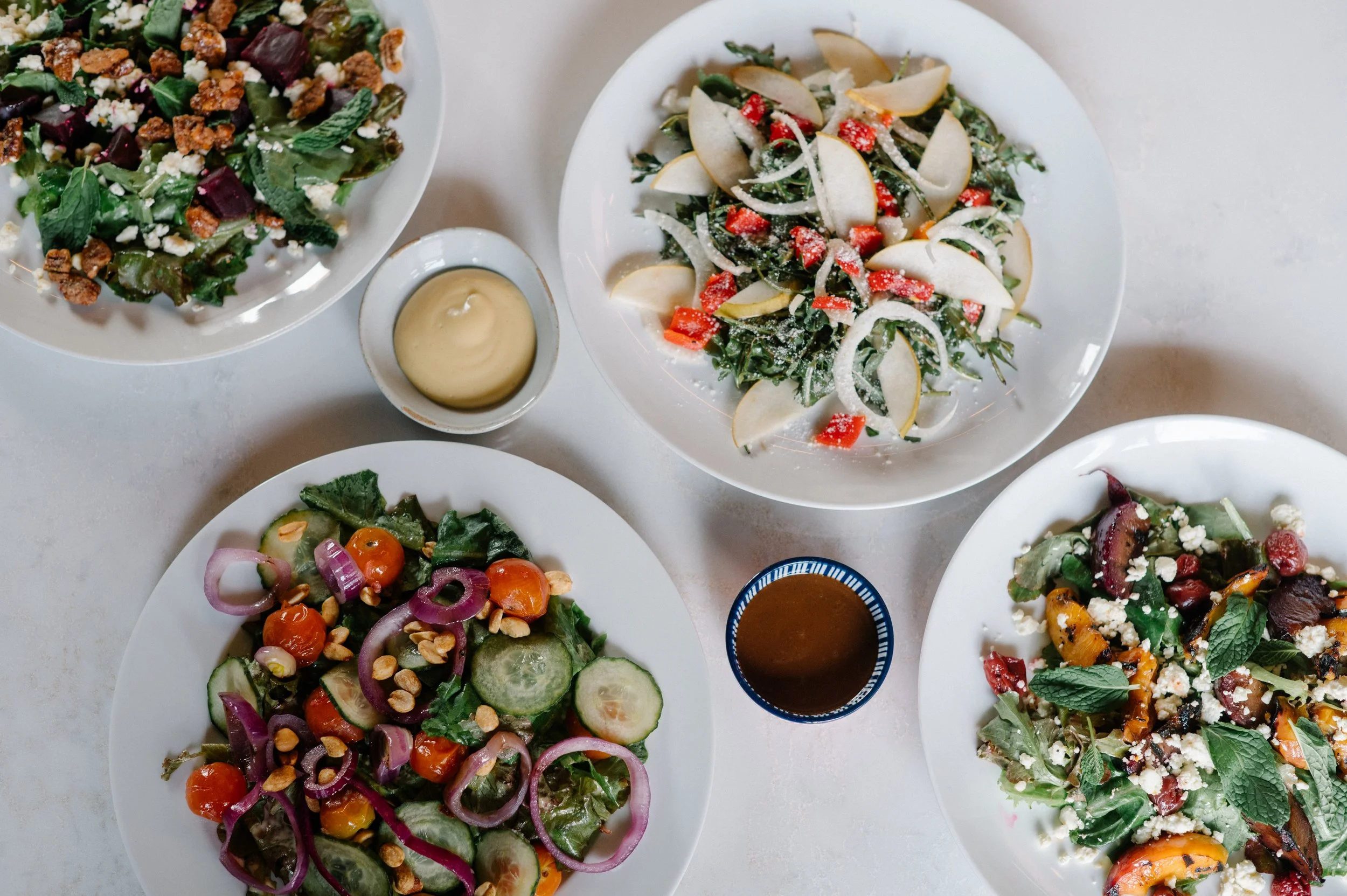 We believe vegetables should have personality. From our Arugula Salad with pears, fennel, and shaved parmesan to our Beet Salad with candied pecans and lemon-mint vinaigrette, these dishes are designed to be fresh, unexpected, and delicious. And on cooler days, a bowl of our Soup of the Day can be as comforting as it is flavorful.